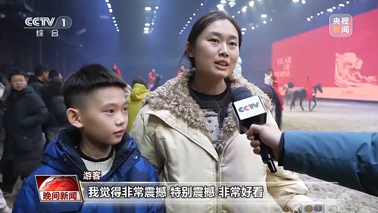 游客:身临其境亲身感受马术表演,我觉得非常震撼,特别震撼,非常好看。