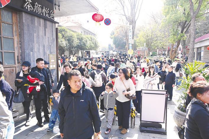 2月20日,武汉市武昌区昙华林人声鼎沸,大批外地游客前来领略武昌老城的独特魅力。 (湖北日报全媒记者 何宇欣 摄)