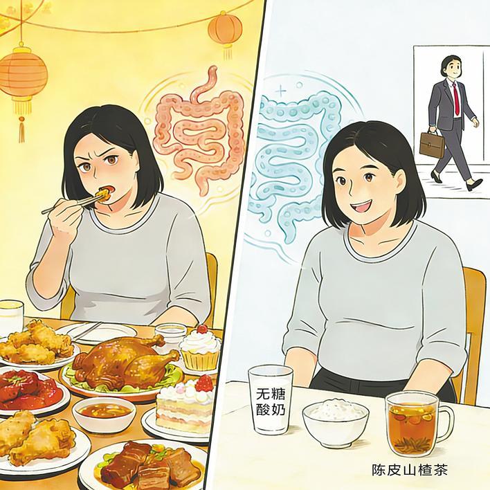 “节后门诊中,肠道不适患者明显增多,以腹胀、腹泻、便秘最为常见,多与节日饮食、作息失调相关。” 常莹介绍,肠道内寄居着数以万亿计的菌群,分为有益菌、有害菌和中性菌,三者相互制约,共同维持肠道微生态平衡。节日期间高糖、高油、高蛋白饮食,加上熬夜、久坐等习惯,会导致有害菌增多、有益菌减少,进而打破菌群平衡。
