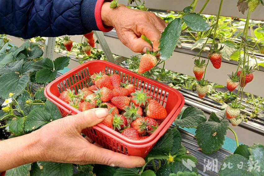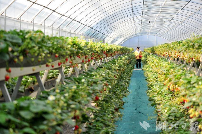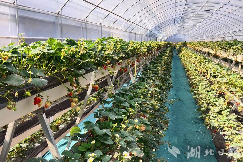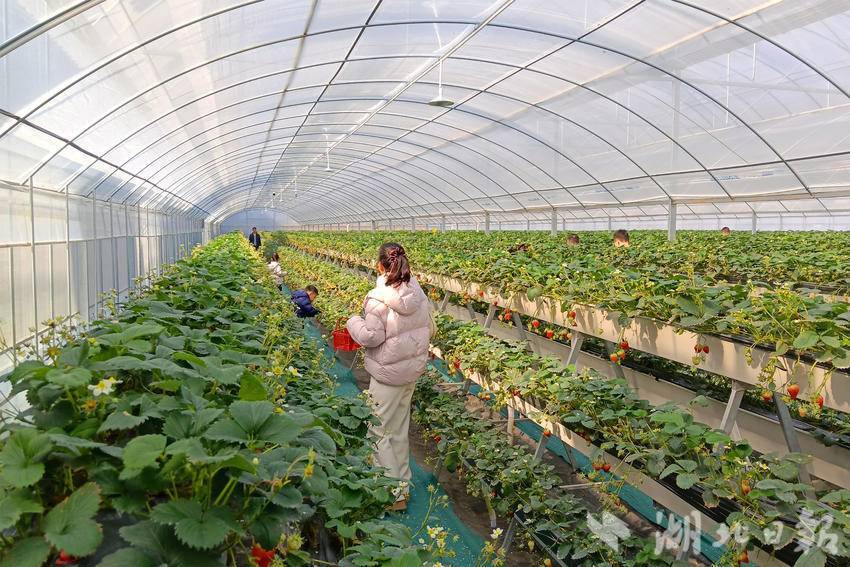 湖北日报客户端讯(通讯员张国荣)2026年2月20日,宜昌市夷陵区小溪塔街道鲟泷湾农旅融合基地的现代果蔬立体种植大棚里,一排排草莓架排列整齐,绿叶中点缀着一颗颗鲜艳的草莓,吸引不少市民体验采摘。