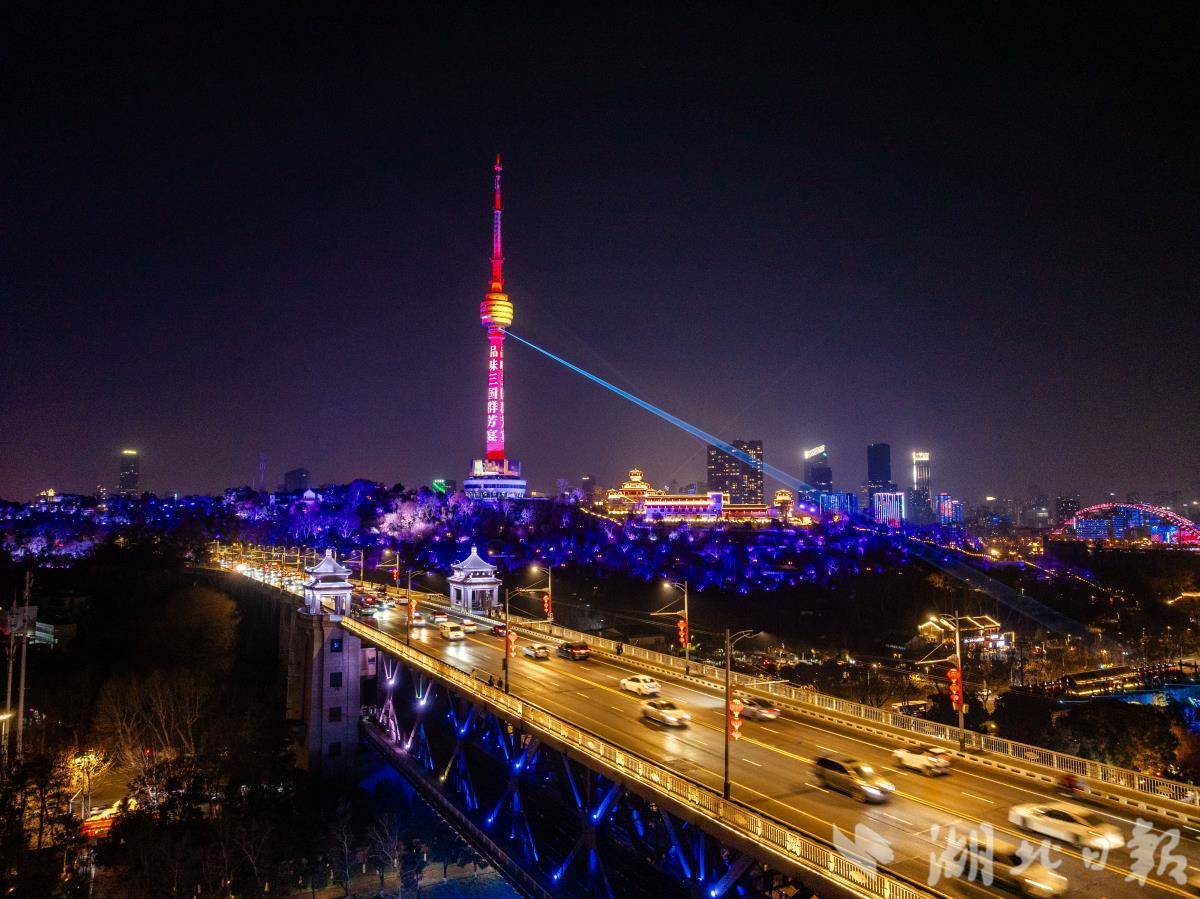 在全市主要道路桥梁、窗口地带、特色街区悬挂灯笼、中国结,营造浓厚年味氛围。开启景观照明“节日模式”,光影动画与街头微景观交相辉映,共同绘就“灯火耀新春,骏马迎新年”的新气象。春节期间,央视《新闻联播》、新闻频道持续聚焦武汉“两江四岸”灯光秀、黄鹤楼楼影生辉、东湖等重点景区灯火花海,展示了英雄城市的良好形象。