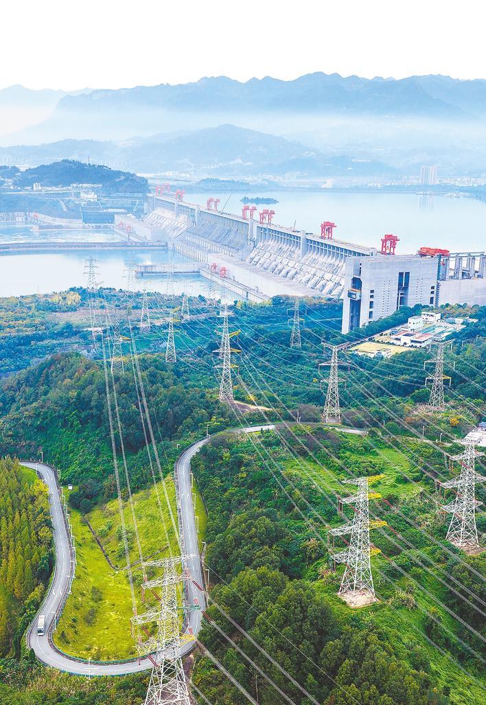 三峡大坝和三峡电站外送输电线路。(湖北日报通讯员 王罡 摄)