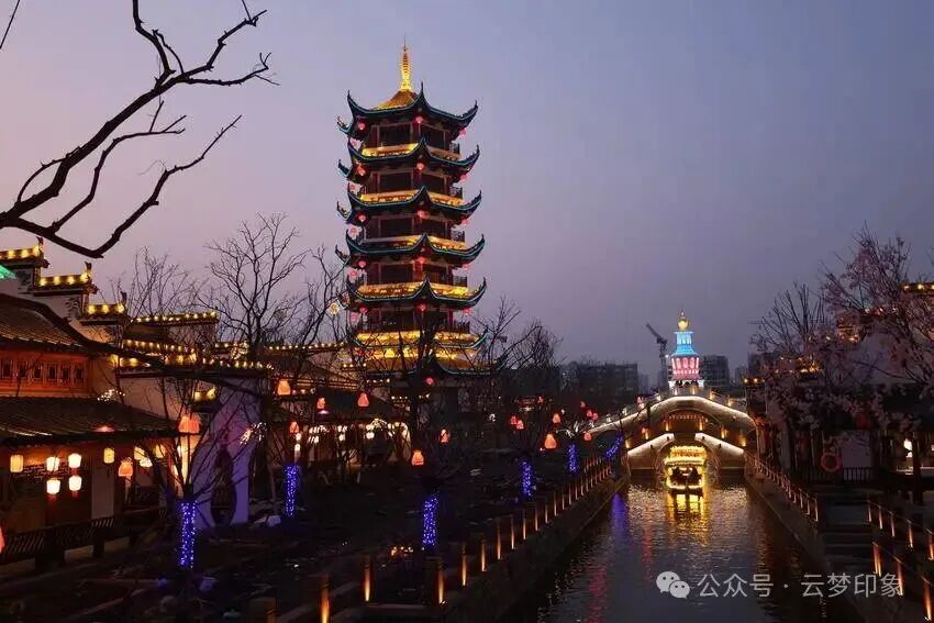 步入景区,小桥流水、青瓦白墙相映成趣,檐角风铃轻响,祥云塔彩灯流光溢彩。碧波之上,彩船悠悠,汉服船娘轻吟楚地民谣,引得游人驻足拍照。古亭、廊桥、许愿道处处张灯结彩,亲子嬉戏、情侣漫步、老友相聚,欢声笑语此起彼伏,喜庆氛围扑面而来。