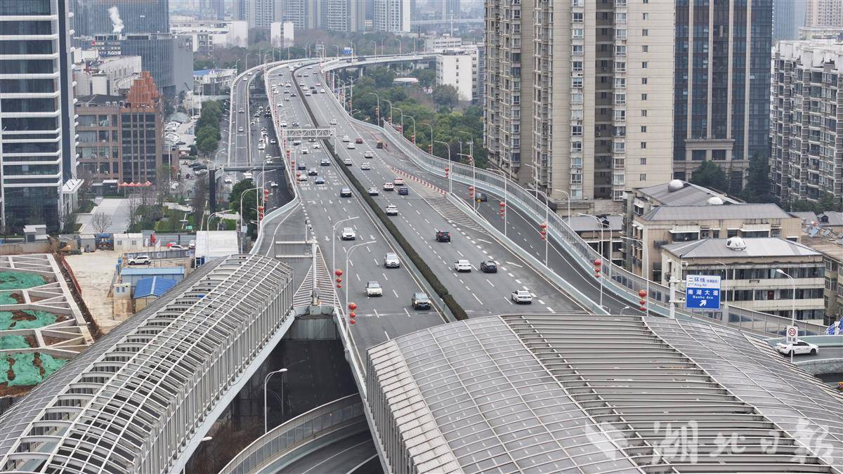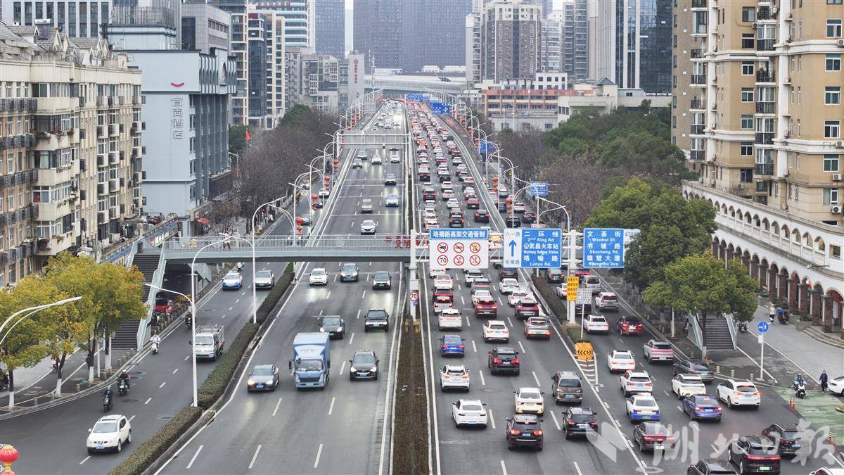 受节后通勤车流集中影响,武汉二环线珞狮路至街道口等部分路段7:30-8:30期间出现车流量增大、行车缓慢现象,但通行秩序良好。交管部门提醒:本周仍属节后车流调整期,建议优先选择地铁等公共交通出行。(湖北日报全媒记者 陈少哲 摄)