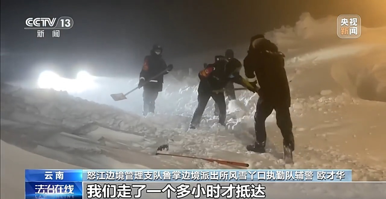 怒江边境管理支队鲁掌边境派出所风雪丫口执勤队辅警 欧才华:2020年,我记得有一天是我值班。那天雪下得非常大。接了一个救助电话,说他们的车子陷在风雪丫口到片马镇3公里处,车上还有一名孕妇,我们这边挂了电话,迅速出警。雪太深,到了我们的膝盖,我们走了一个多小时才抵达被困车辆地点。到达现场后,看到孕妇羊水已破,情况相当危急。经过救援工作,被困车辆已成功解救出来,孕妇也及时送往了医院,后面得知母子平安,我觉得我们所付出的都是值得的。