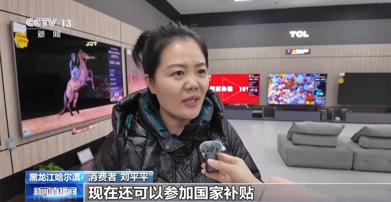苏宁易购哈西万达店负责人 孙红超:春节期间定制版的智能家电上新,一些具有AI智能操控功能的新品成为众多家庭的新年礼物首选。加上今年的国补政策加持,我们单日销售额同比增长了170%。