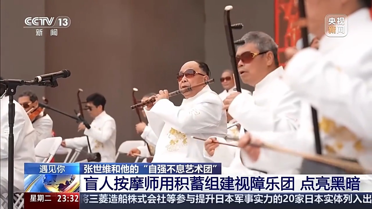 他们在视觉黑暗的世界相遇,又因为心中有梦想的光亮,默契地用音乐和热爱点亮着彼此。他们的乐团有个响亮的名字——自强不息艺术团,团长名叫张世维。