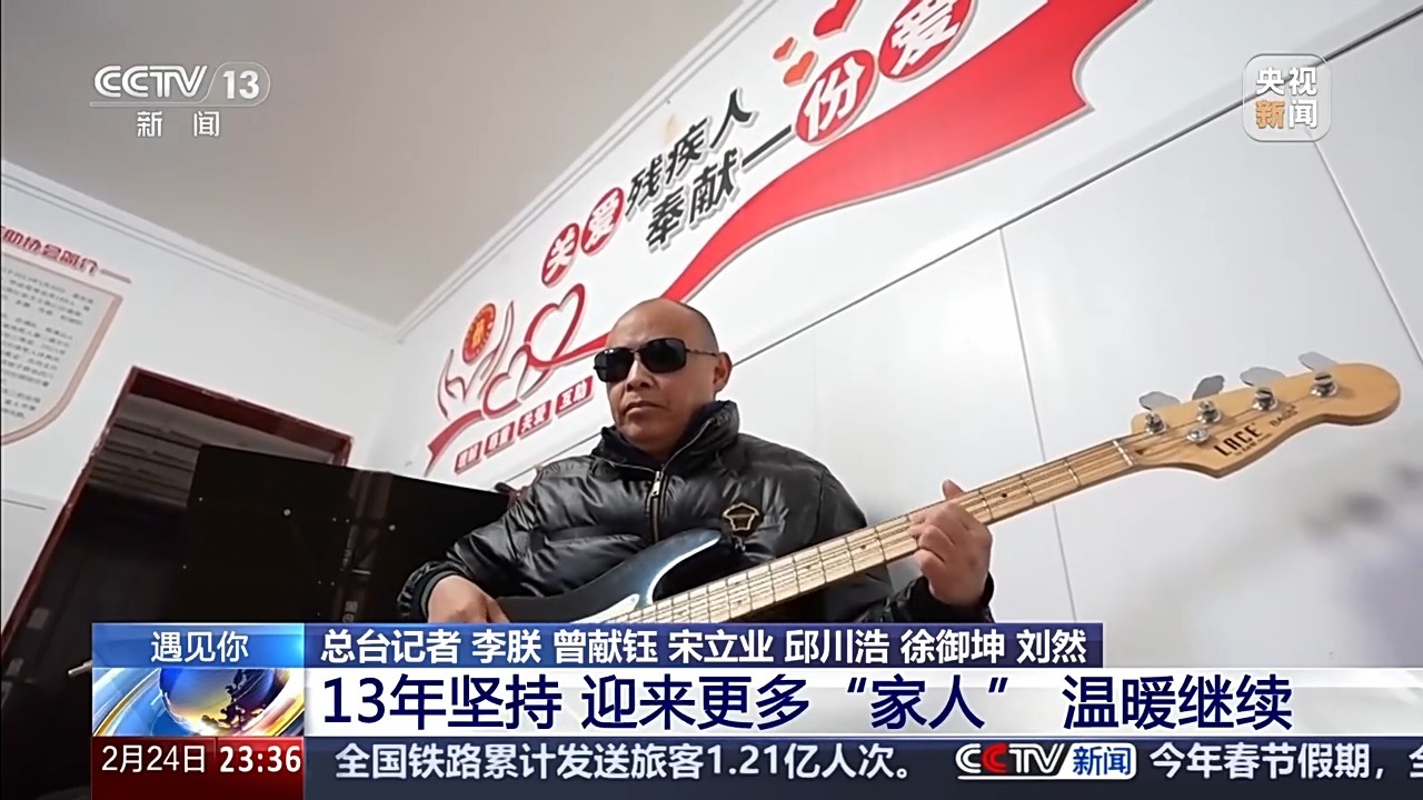 自强不息艺术团乐手 唐国彬:张老师,我们盲人朋友都喜欢他。