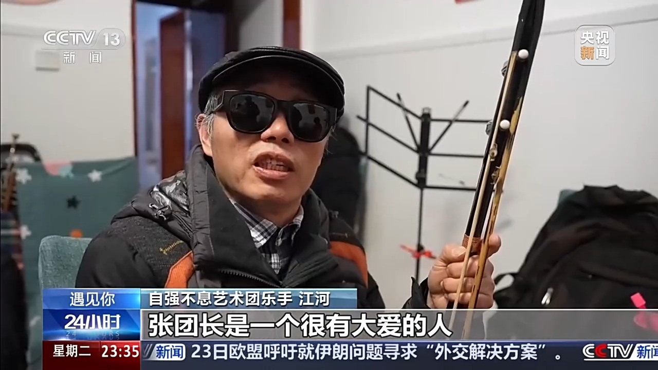 自强不息艺术团乐手 江河:张团长是一个很有大爱的人。