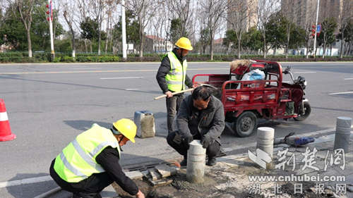 市政维修精细入微,守护脚下安全。春节前后人流、车流激增,对市政基础设施是一次严峻考验。节后上班第一天,钟祥市城管部门抢抓气温回升的有利时机,组织力量对市政设施进行集中修复。在城区各主次干道上,市政养护工人忙碌的身影随处可见。