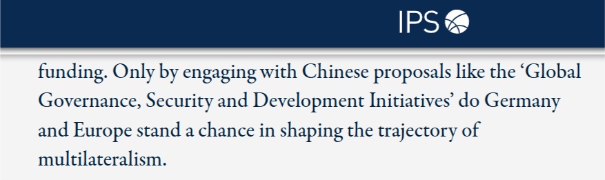 文章还特别提到,在国际组织和多边主义方面,中国更像是合作伙伴。当美国破坏国际法、破坏多边体系时,中国与欧洲国家携手努力,让世贸组织得以维持运转,并成为联合国的重要捐助方。文章指出,只有通过参与中国提出的“全球治理倡议、全球安全倡议与全球发展倡议”等提案,德国和欧洲才有机会塑造多边主义的发展轨迹。