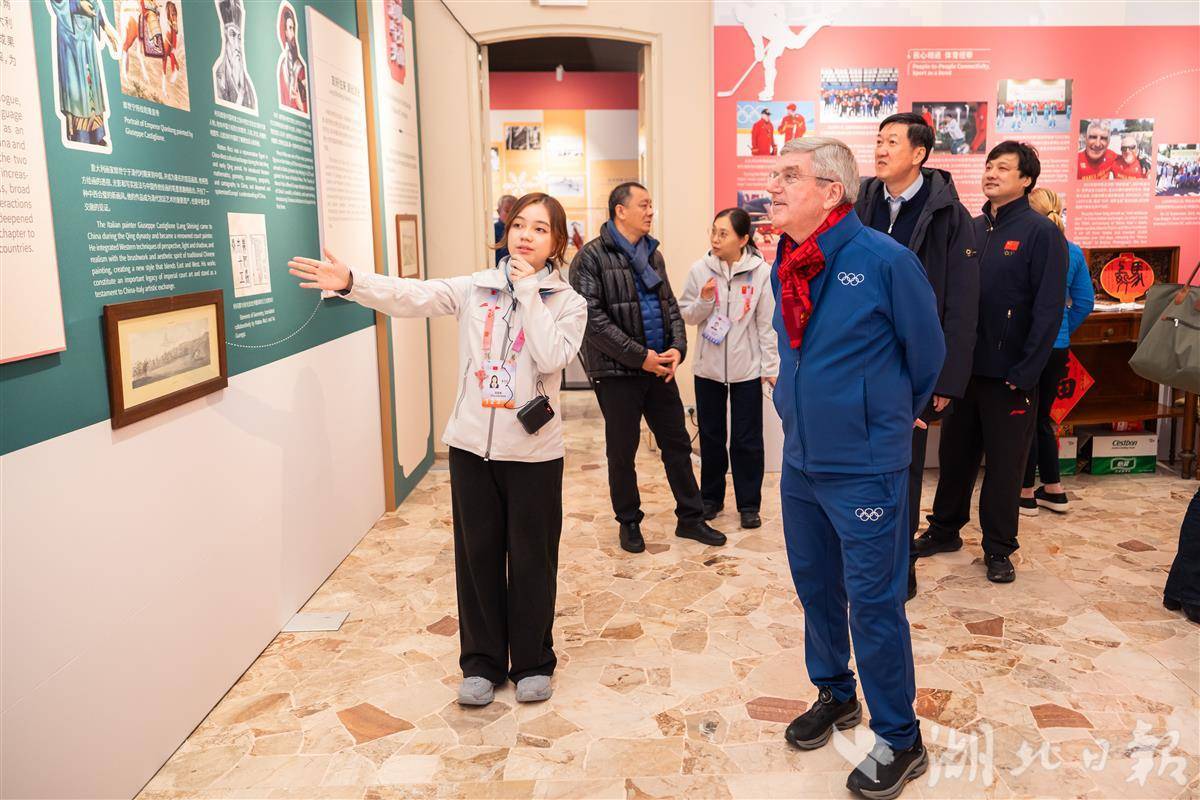 鲁玥菡为国际奥委会终身名誉主席托马斯·巴赫做接待讲解。