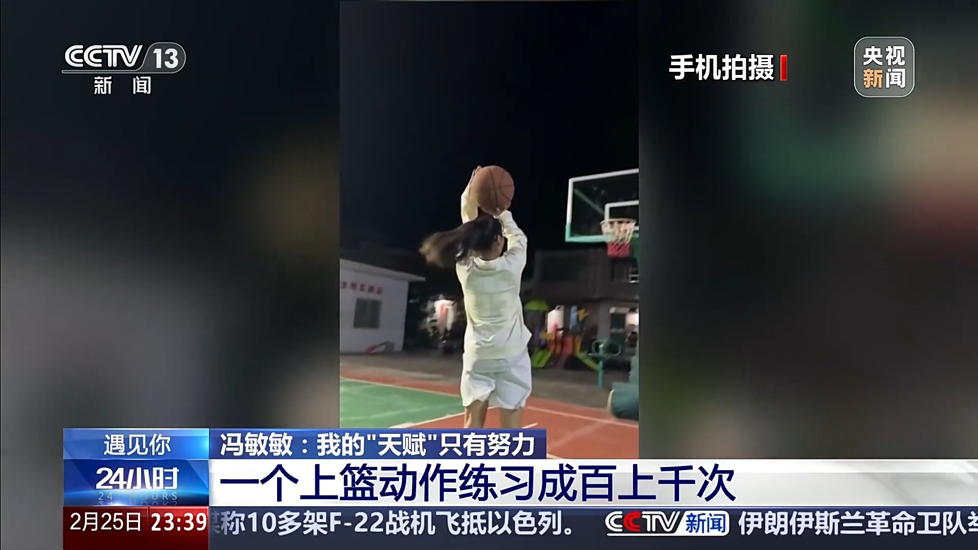 冯敏敏的“神龙摆尾”不是一天练成的,她练了成百上千次。有时在村里的篮球场,有时在家门口的篮球架下。