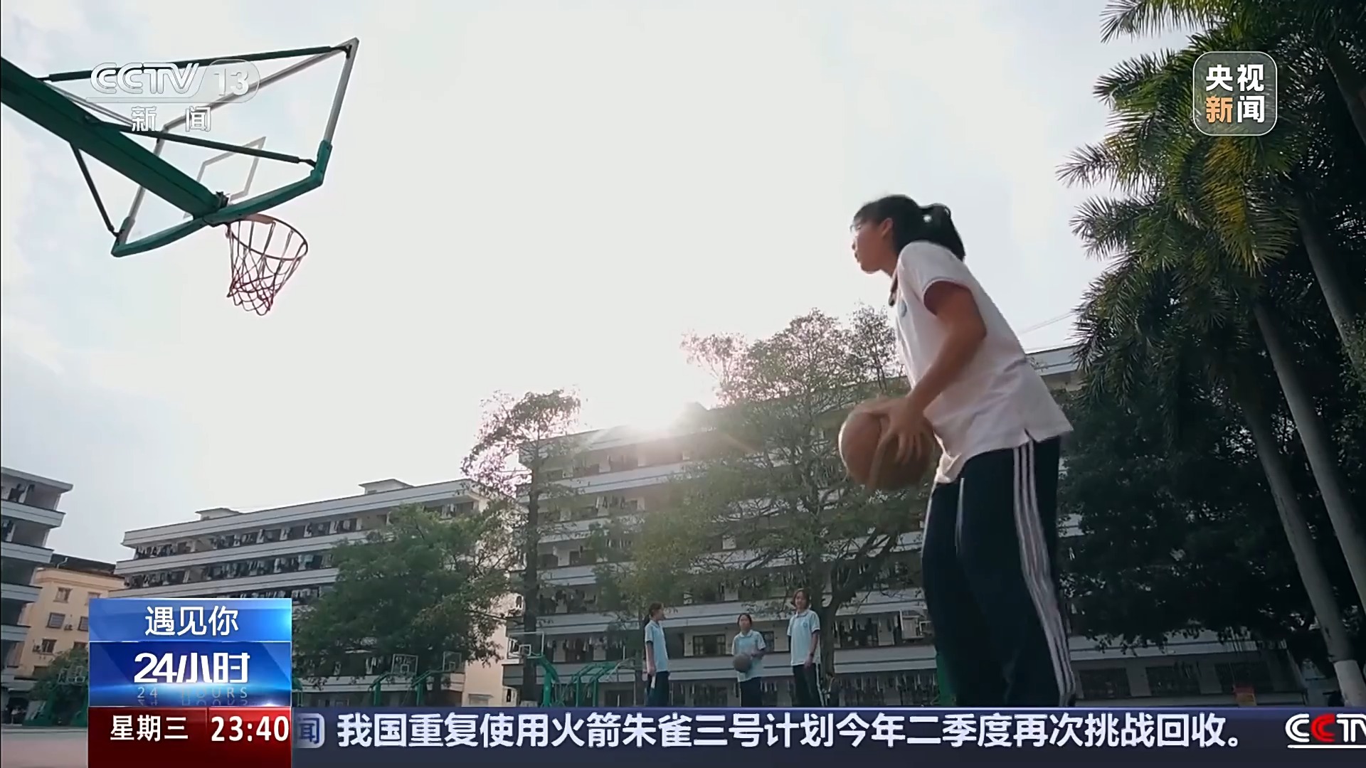 球场上那个身影活跃、戴着眼镜的女生,就是冯敏敏。就读于广西崇左市龙州县高级中学高二体育班的她,把几乎所有课余时间都交给了篮球。只要球场空着,篮球架下总能看到她的身影。
