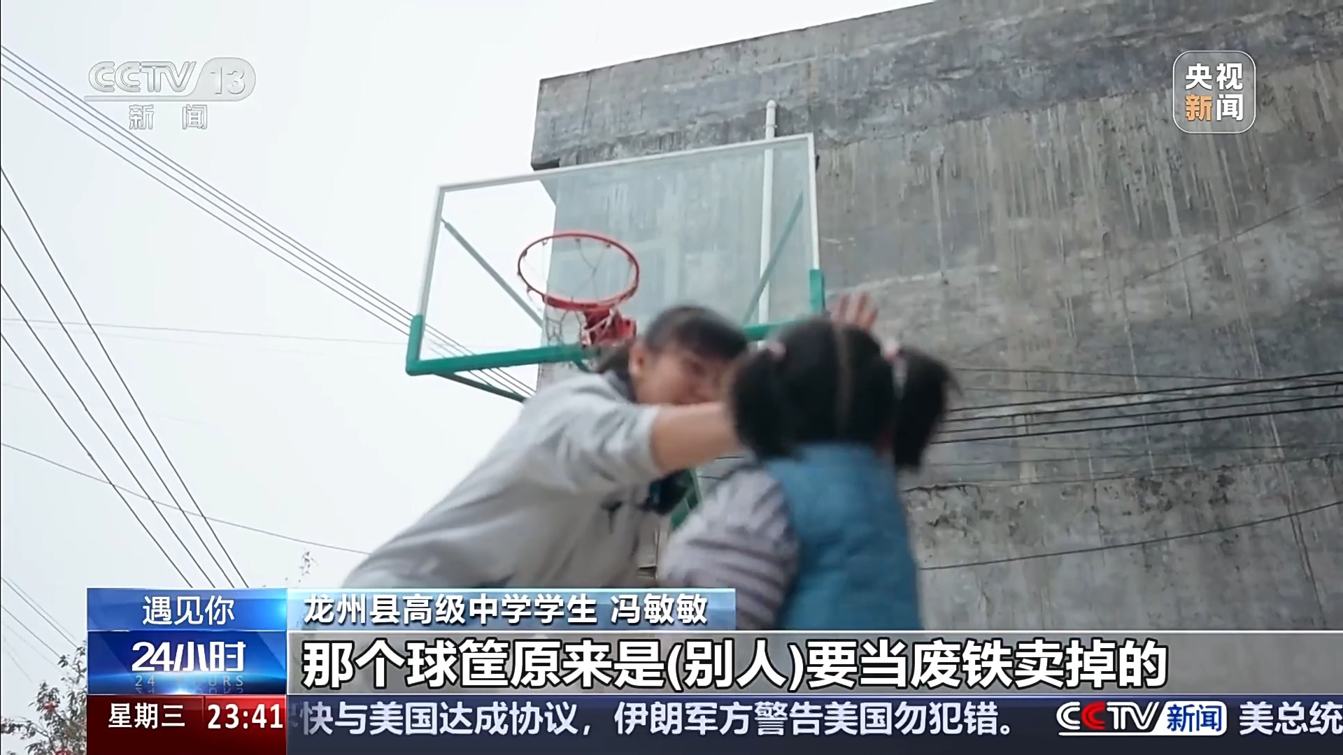 龙州县高级中学 学生 冯敏敏:那个球筐原来是别人要当废铁卖掉的,然后我爸爸通过他朋友知道的,就500块钱买回来了。