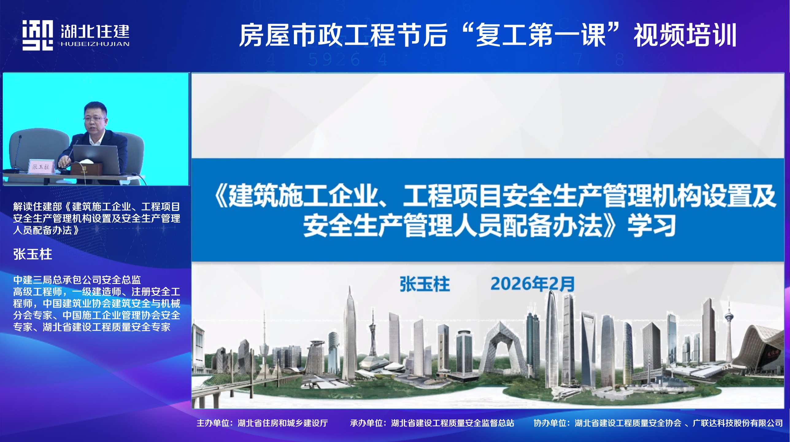 湖北日报讯(记者肖丽琼、通讯员彭慧)2月25日,省住建厅以视频形式召开全省房屋市政工程节后“复工第一课”培训会,锚定省委、省政府“新春第一会”部署,聚焦复工安全底线,为全省住建领域冲刺一季度“开门红”按下“快进键”。