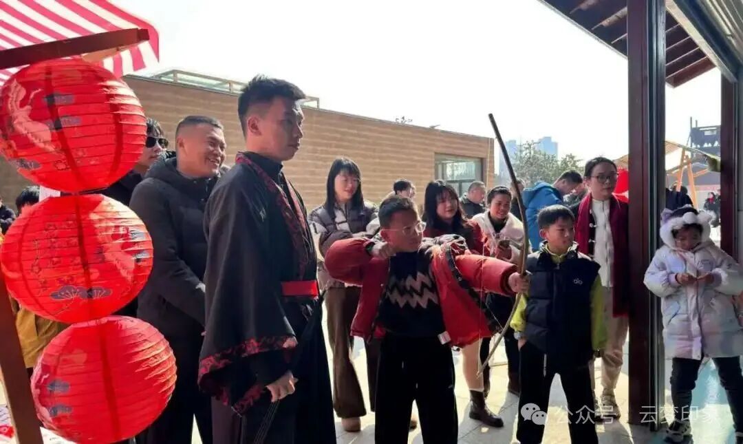 客群扩容,三代同游,阖家欢聚成主流。“跨代组合”成为假日出行标配,家庭游、亲友结伴游占比超七成。祥云湾内,祖孙三代同赏打铁花、共品鱼面汤,非遗展演成为代际情感共鸣的纽带;楚王城中,年轻父母带孩子体验投壶射箭、花灯DIY,在沉浸式互动中传承年俗记忆;影剧院里,三代同行“陪父母看电影、听楚剧”,在乡音古韵中话家常、叙亲情。95后、00后身着汉服穿梭古建园林、打卡文创市集,成为短视频平台上“云梦故事”的年轻传播者,实现老中青幼各得其乐、全龄覆盖。