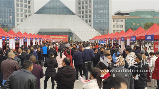 郧西县天河广场上“春风行动”暨返乡创业就业专场招聘会现场。徐光意 摄