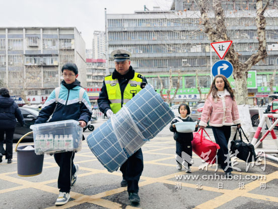 当天上午,返校学生与接送车辆集中出行,人车流交织叠加。执勤民辅警分工协作,在车流密集点位引导车辆即停即走、有序停放,及时疏导拥堵节点;同时,现场民警不断提醒过往车辆减速礼让,引导学生安全过街,并主动帮助学生搬运行李,确保校园门前及周边路段井然有序。