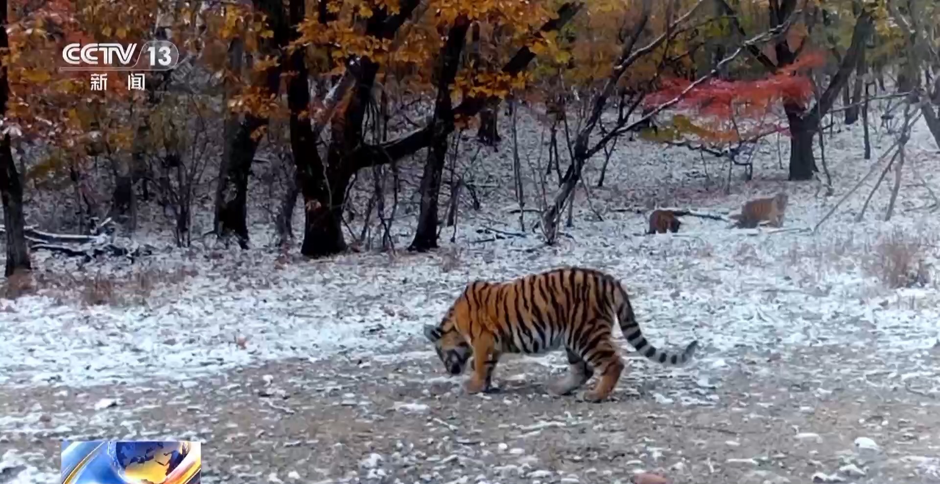 陈阳:最近有一个好消息,天空地一体化监测系统多次拍摄到一母带三崽的东北虎家庭,正好在“完达山1号”领地范围内,这三只幼虎极为可能是它的后代,我们正在做进一步的DNA检测。