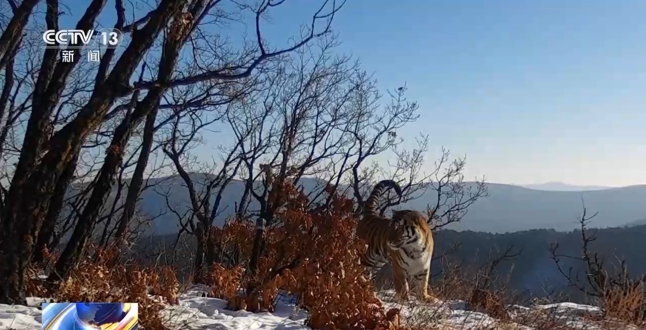 东北虎豹国家公园管理局副局长 陈阳:放归三年以来,“完达山1号”辗转万里来到东北虎豹国家公园东宁片区定居下来,足以说明东北虎豹国家公园栖息地质量已经恢复到一个较高的水平,有蹄类动物成倍增长,虎豹等食肉动物的食物链完整充足。