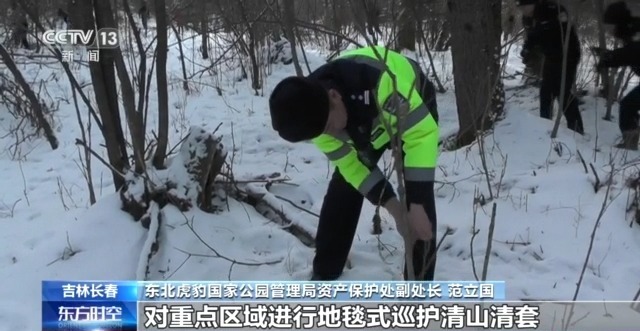 每年冬(春)季,虎豹局会同吉林、黑龙江省林草局、地方人民政府、公安机关开展巡山清套和保护野生动物栖息地专项行动,对重点区域进行地毯式巡护。在雪大的地区进行适当补饲,对伤病野生动物进行及时救助,同时开展普法宣传和人兽冲突防范知识的普及教育等。