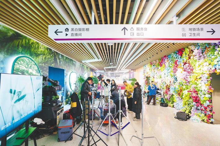 从武汉东站西广场进入地下空间,一座完整的“城市街区”豁然展开:咖啡店、酒吧、会议室、车站等场景一应俱全。这里是专为微短剧拍摄量身打造的专业场景空间,集多场景拍摄区、服化道工场于一体,同时提供影视设备租赁、立项备案、版权交易、达人经纪等配套服务。依托武汉东站区位优势,剧组可以实现“一下高铁就开机”。