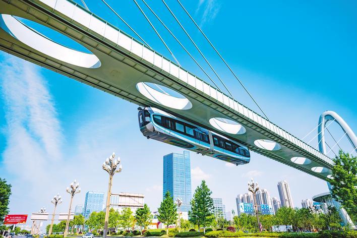 光谷空轨俯瞰城市美景、体验诗意生活,成为武汉又一张亮丽新名片。 (湖北日报全媒记者 魏铼 摄)
