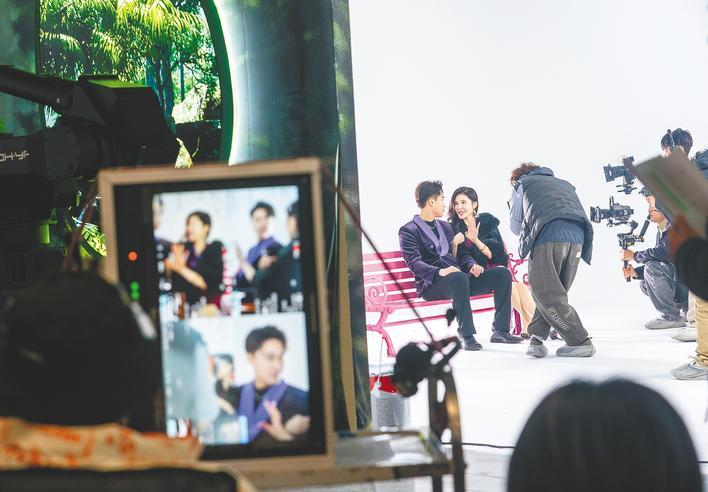 “我们是湖北省首家多场景微短剧拍摄基地,相当于把剧组所有转场都集中在同一空间,制作效率可提升30%左右。”产业基地负责人张平介绍,一期项目占地近9000平方米,自去年2月投用以来已产出微短剧作品200余部,客户遍布全国。目前正在抖音平台热播的《逆光而来的你》,不少场景便在基地完成拍摄。