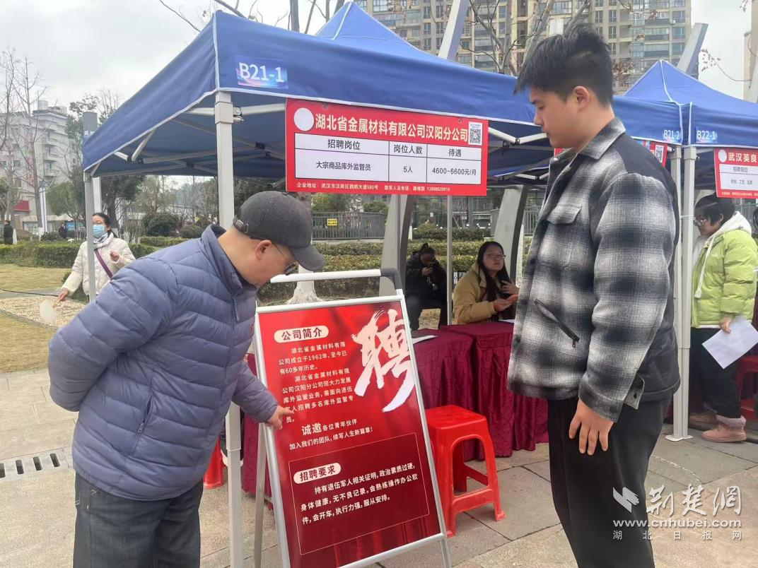 荆楚网(湖北日报网)讯(通讯员朱保国 黄勇)2月27日上午,武汉市蔡甸区退役军人事务局联合区人力资源和社会保障局等相关部门,在蔡甸区广场成功举办蔡甸区2026年稳就业、保用工、促发展“春风行动”现场招聘会。