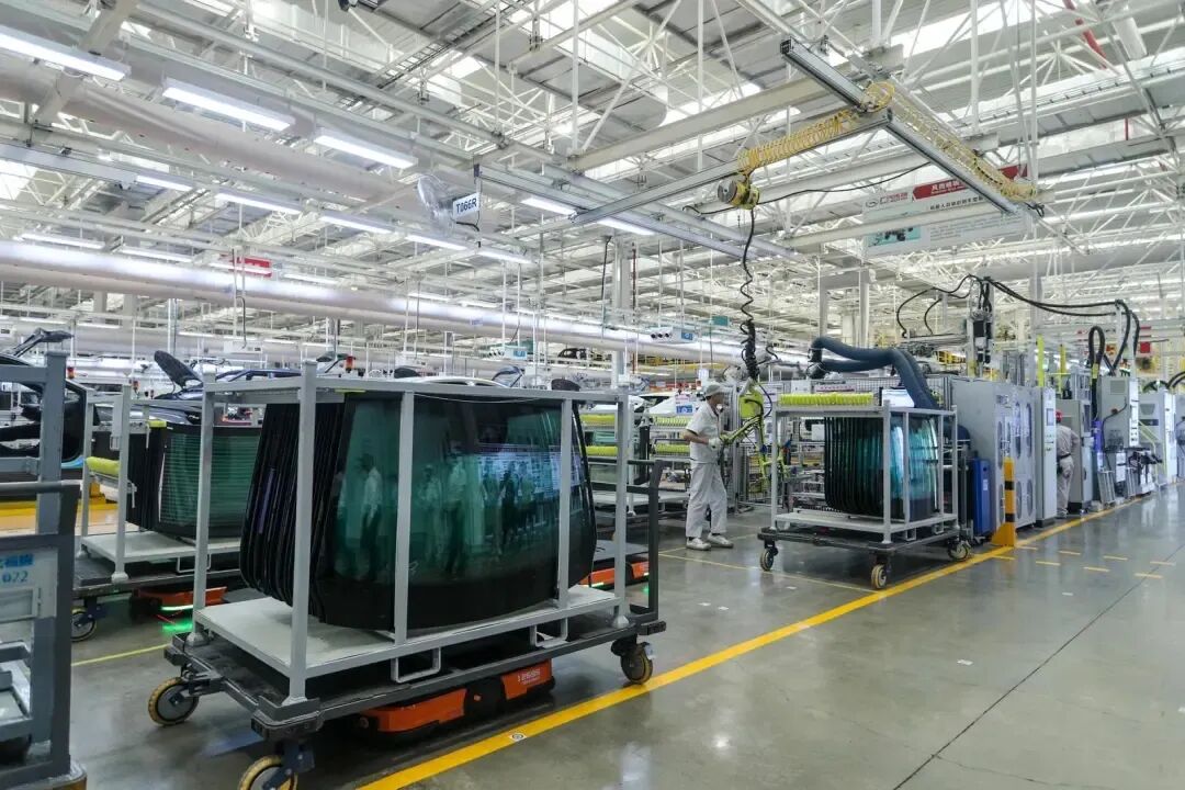 ▲广汽传祺宜昌工厂总装车间依托机器人自动化作业。林潇 摄