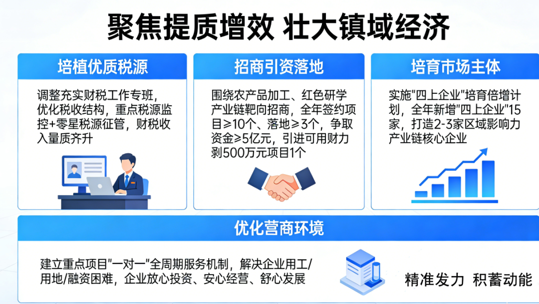 聚焦提质增效,在壮大镇域经济上精准发力、积蓄动能。