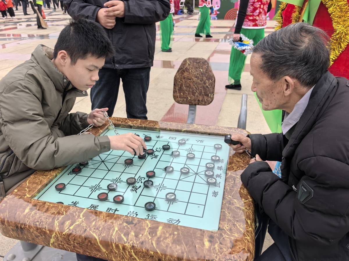 一老一少现场对弈。(湖北日报全媒记者 童军鹏 摄)