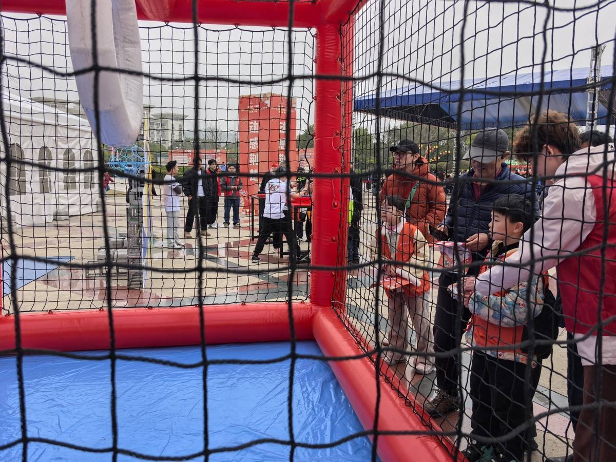 小朋友体验无人机足球。(湖北日报全媒记者 童军鹏 摄)