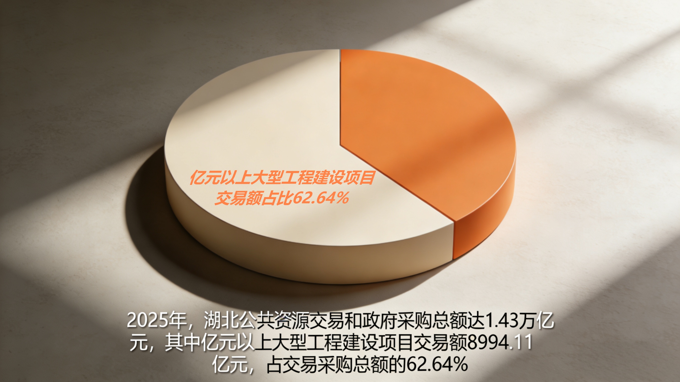 2025年湖北公共资源交易采购规模1.43万亿元,亿元以上大型工程建设项目占比62.64%。