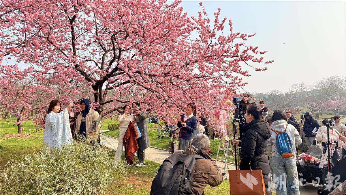 湖北日报讯(记者冯袁玥、通讯员武文旅)“一夜之间,整棵树都染成粉色。”近日,武汉市汉阳区鹦鹉花园小区的居民推开窗,便被一片“樱花瀑布”所震撼。受暖冬气候影响,武汉今年的樱花较常年提前绽放,且花期呈现延长趋势。同时,遍布全城的早春花卉已进入盛放期,将传统的“赏花游”档期从三月提前至春节。