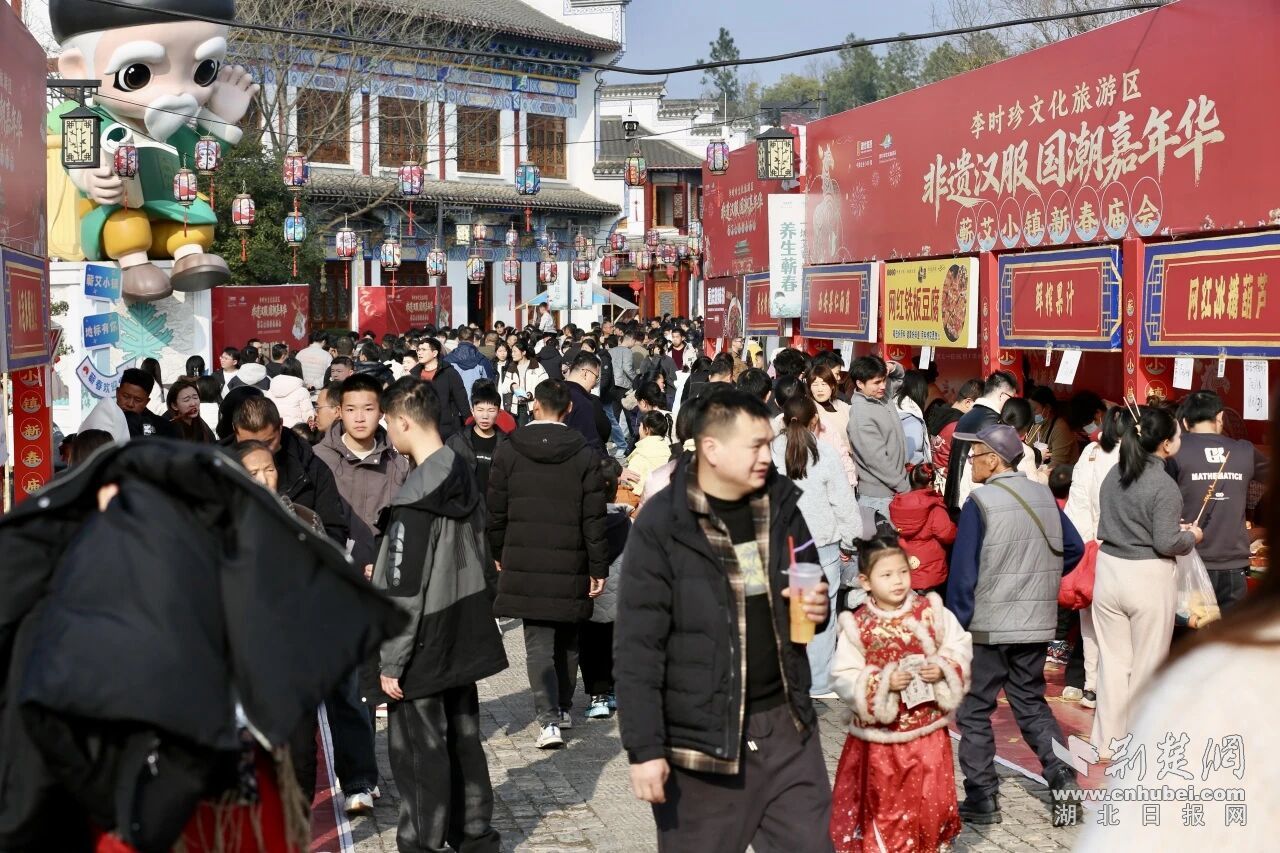 荆楚网(湖北日报网)讯(通讯员 张聪 陈钰)2月22日,央视《新闻直播间》用76秒时长聚焦蕲春。镜头中,李时珍文化旅游区张灯结彩,游客手持仿古“银票”,在投壶、闻香识药等活动中沉浸其间。这76秒,让全国观众看到,“李时珍”不再是静态的展陈符号,而是可沉浸、可交互的文化IP;“时珍故里”不再只是一个地理标签,而是可感知、可共鸣的健康城市特质。