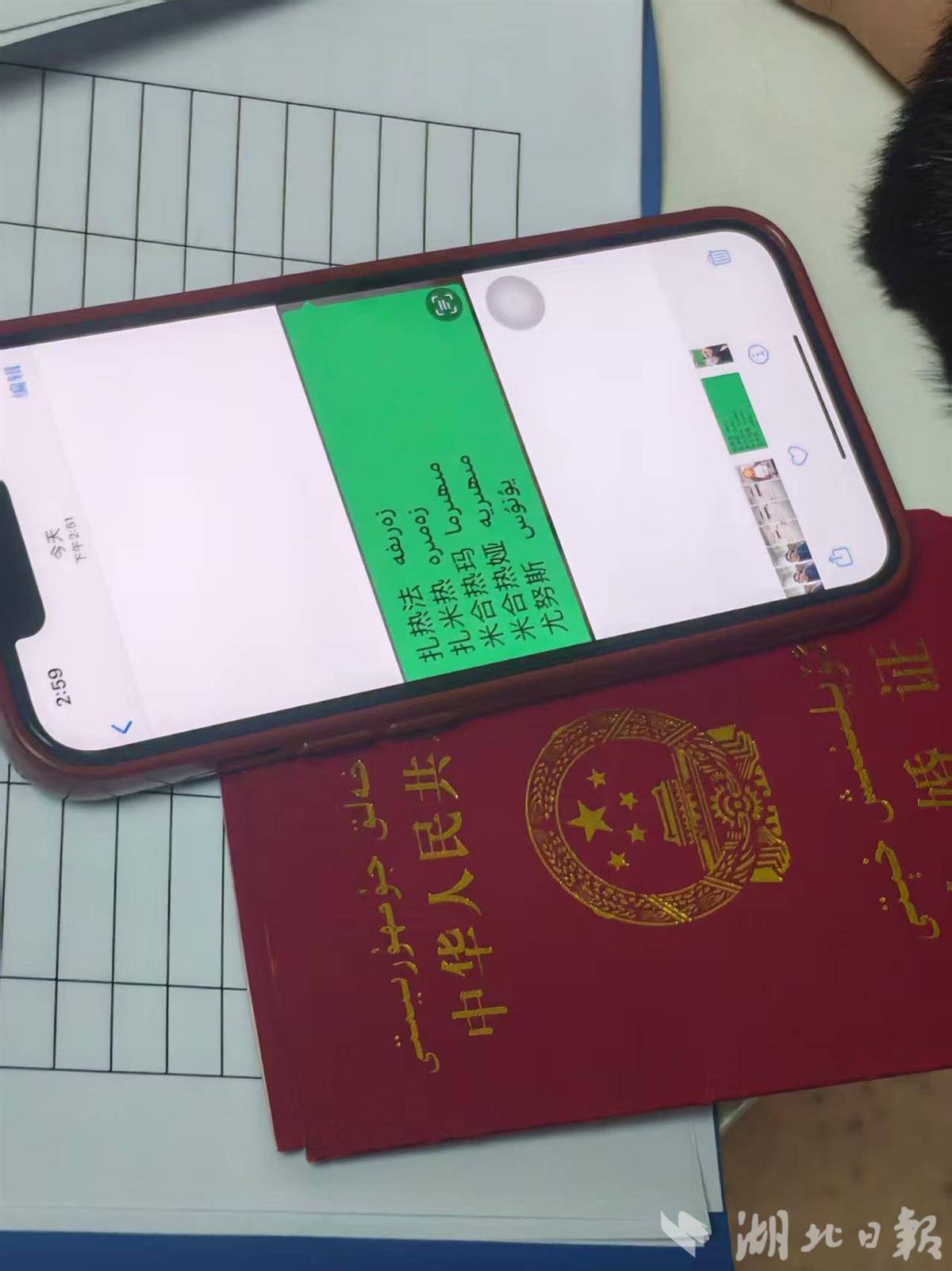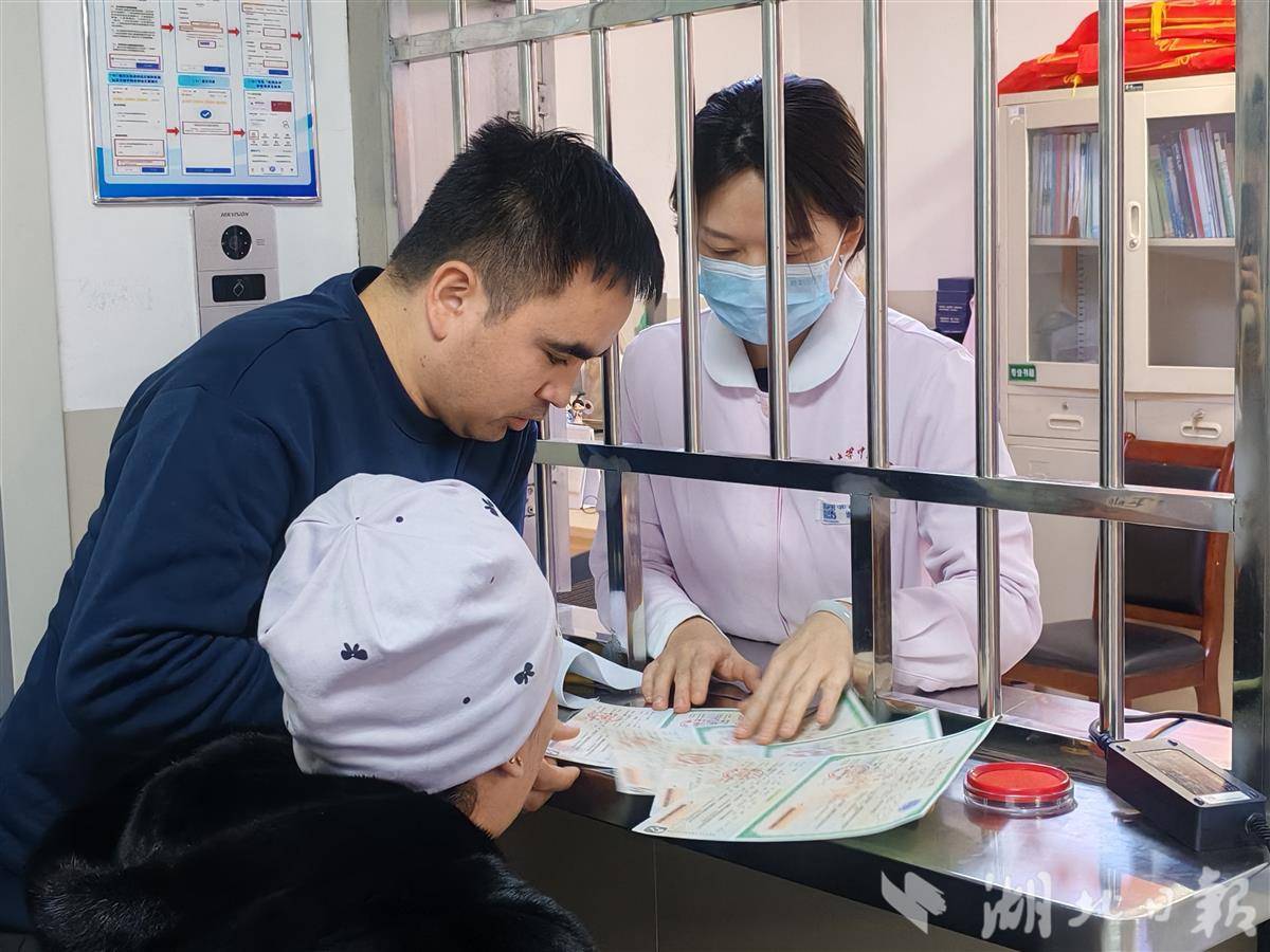 迪丽和丈夫为孩子们办理出生证。(湖北日报全媒记者 胡雯洁 摄)