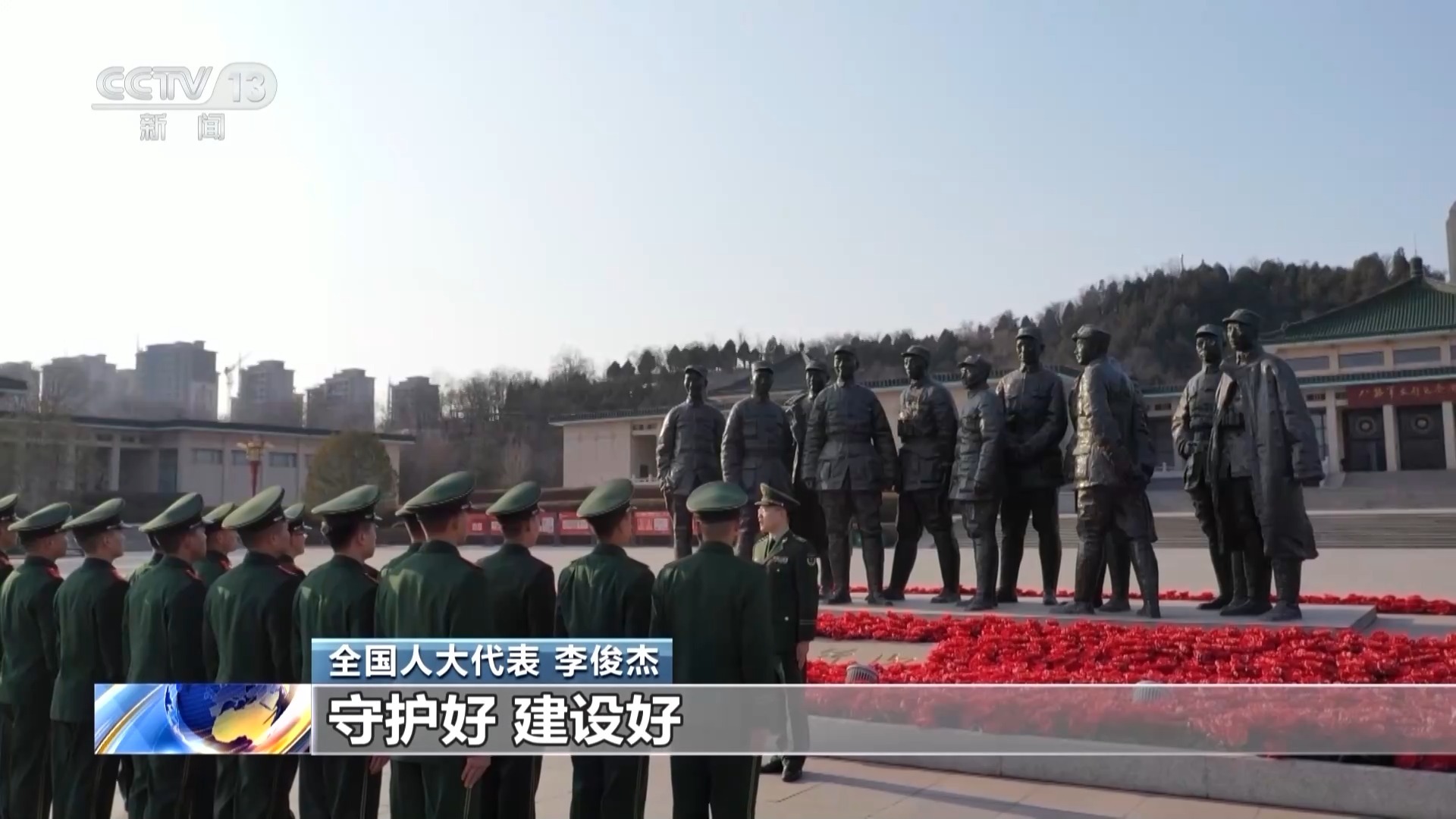 全国人大代表 李俊杰:英雄烈士、部队官兵、青少年,铺展开一个民族精神的长卷、和平的基石和复兴的宏图。守卫“英烈红”、传扬“国防绿”、赓续“英雄气”,就是要把革命先烈流血牺牲打下的红色江山守护好、建设好,把红色基因传承下去,确保红色江山永不变色。