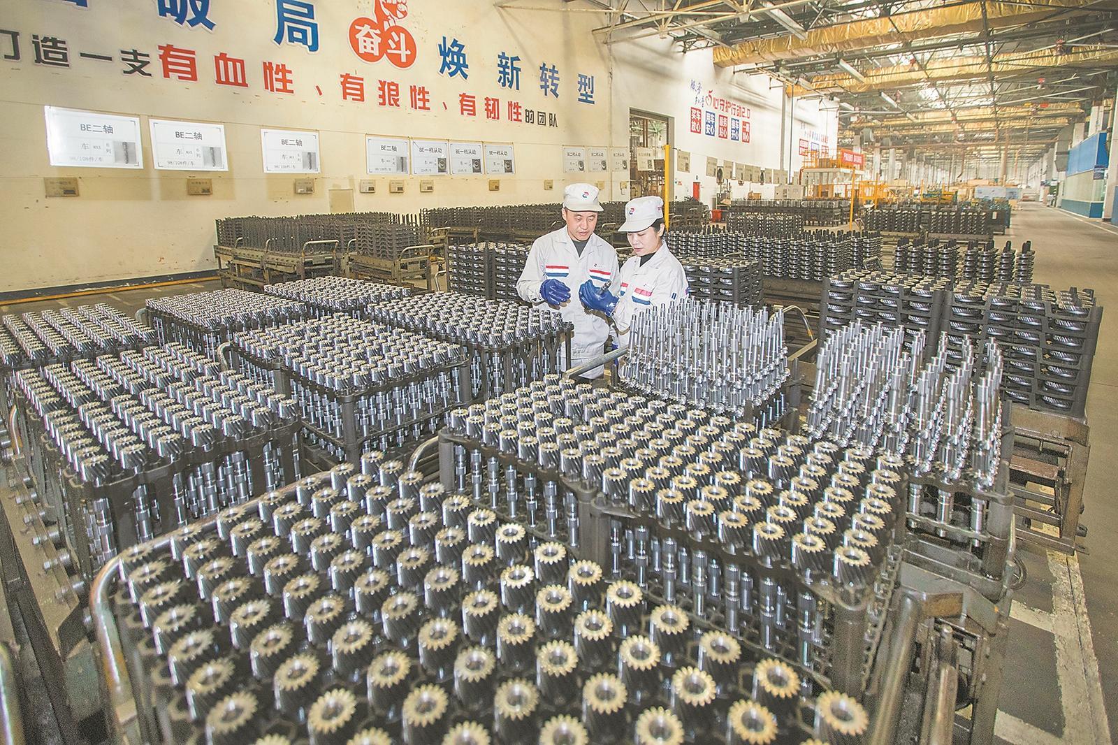 2月27日,在湖北襄阳神龙汽车有限公司襄阳工厂的生产现场,工人们正在对变速箱Be二轴进行目视检查。该企业主营发动机、变速箱、减速器总成及零部件业务,目前发动机日产量达180台,变速箱钢件日产量达8000件。据了解,该企业一季度预计出口曲轴超7万件、钢件超55万件,部分订单已排至年底。 记者 李旭晖 通讯员 朱亚丽 摄