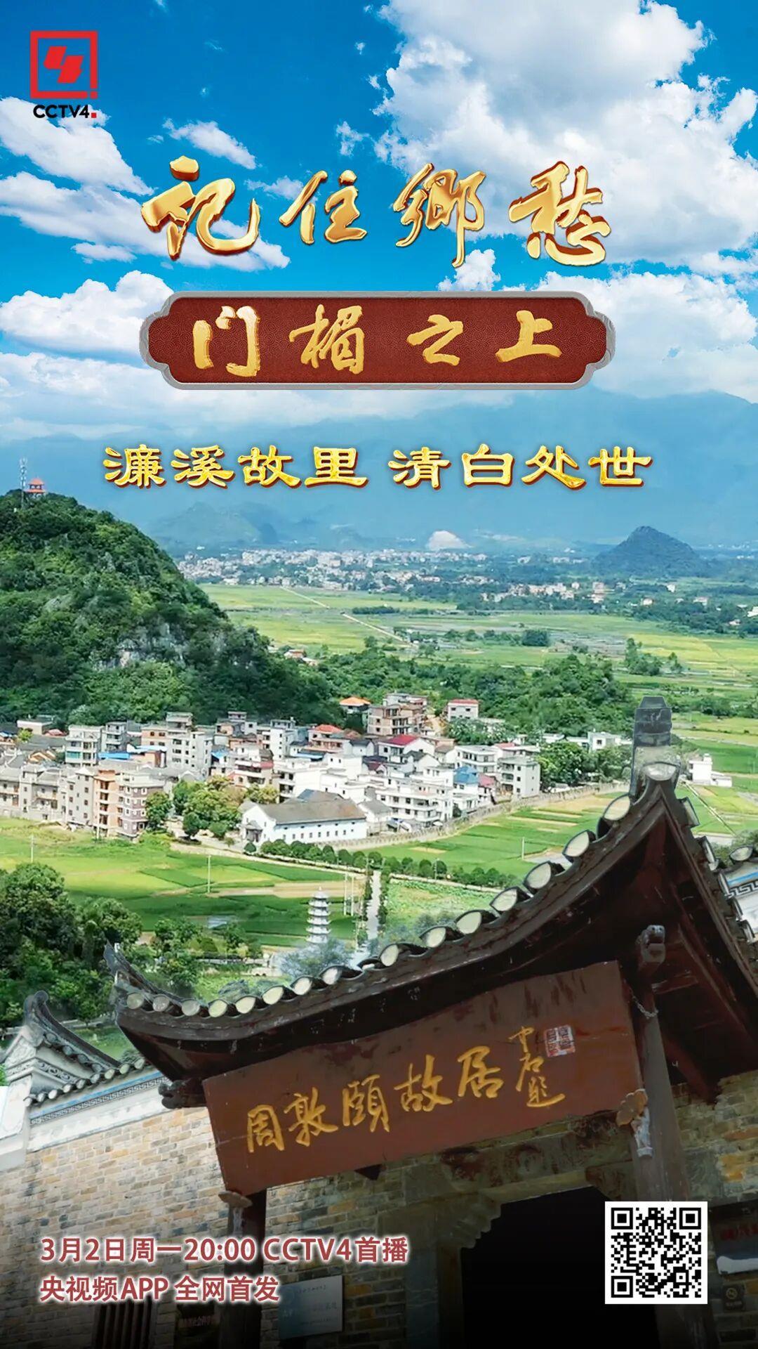 今晚20:00,CCTV-4《记住乡愁》“门楣之上”系列,走进濂溪故里,聆听北宋大儒周敦颐的清白家风。