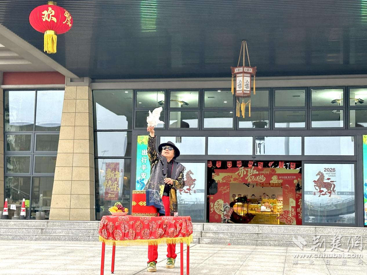 服务区现场,一场场精彩的民俗盛宴正接续上演。铿锵的锣鼓响起,舞龙舞狮队伍腾挪翻跃,精彩表演引来阵阵掌声与喝彩。韵味十足的踩莲船,步伐轻盈、唱腔婉转,沉浸式呈现出原汁原味的荆楚民俗风情。川剧变脸、奇幻魔术等节目也接连登场,令人目不暇接。“没想到在高速服务区也能度过一个如此有仪式感的元宵节!”现场观看的司乘纷纷感叹。