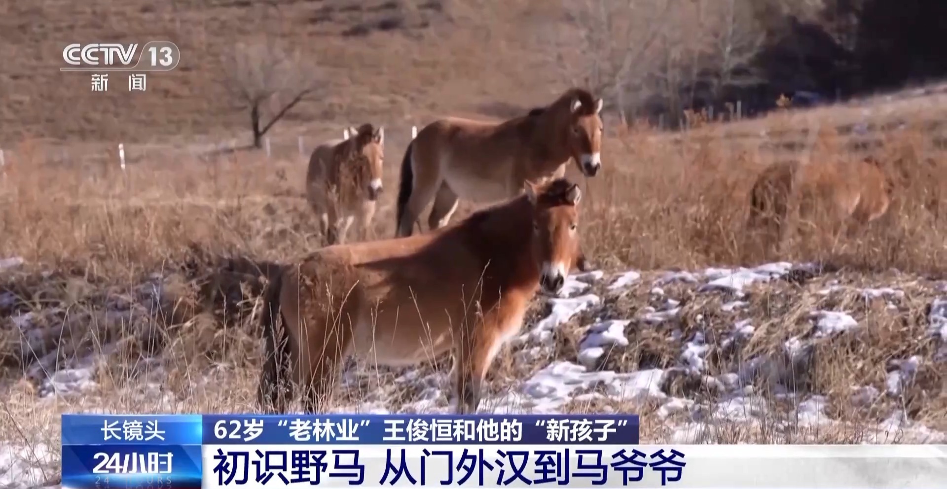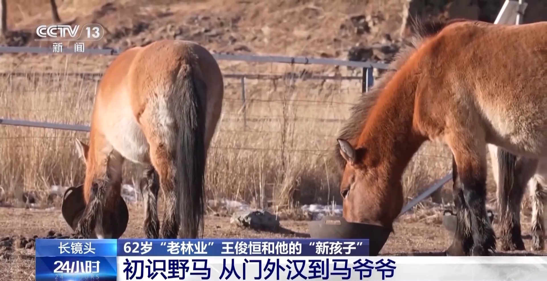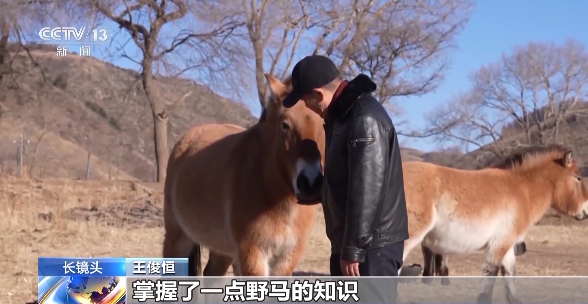 冬季食物匮乏,为了保证野马安全过冬,基地每天要进行两次补饲,雪大的时候还要额外“加餐”。在守护普氏野马的过程中,工作人员会尽量避免和它们过于亲近,帮助野马保持和恢复其自然野性。不过,长期的补饲生活让马儿们和王俊恒也熟络起来。