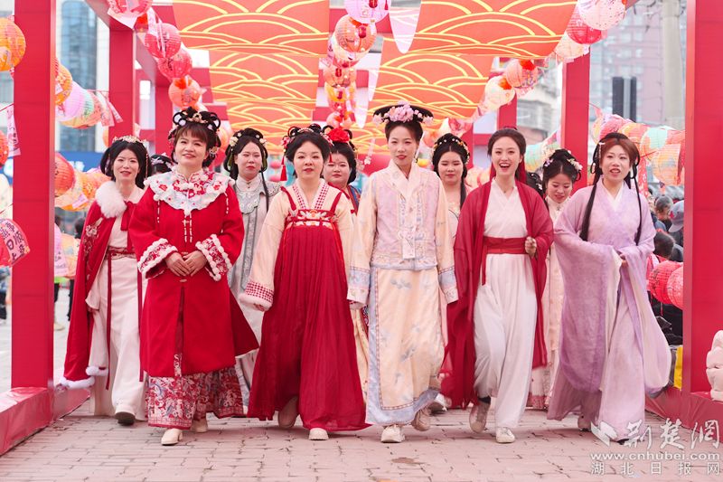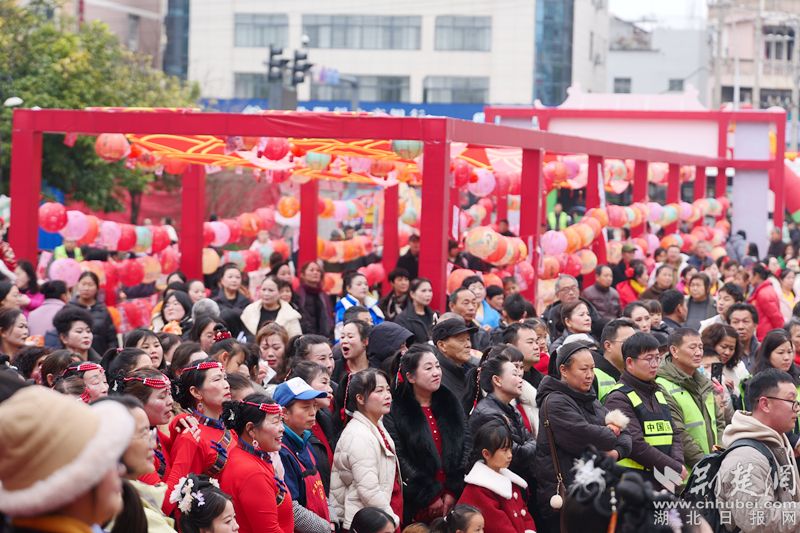 游园会的火爆,从下午3点就开始了。主舞台前,锣鼓震天响,台下里三层外三层,操着三地口音的观众跟着节奏鼓掌。灯谜长廊里,一位黄冈口音的大爷摘下一条谜面,转身问身边的鄂州小伙子:“这个‘元宵节后捷报多’,打一成语,你们猜出来没?”两人嘀咕几句,一起奔兑奖台。