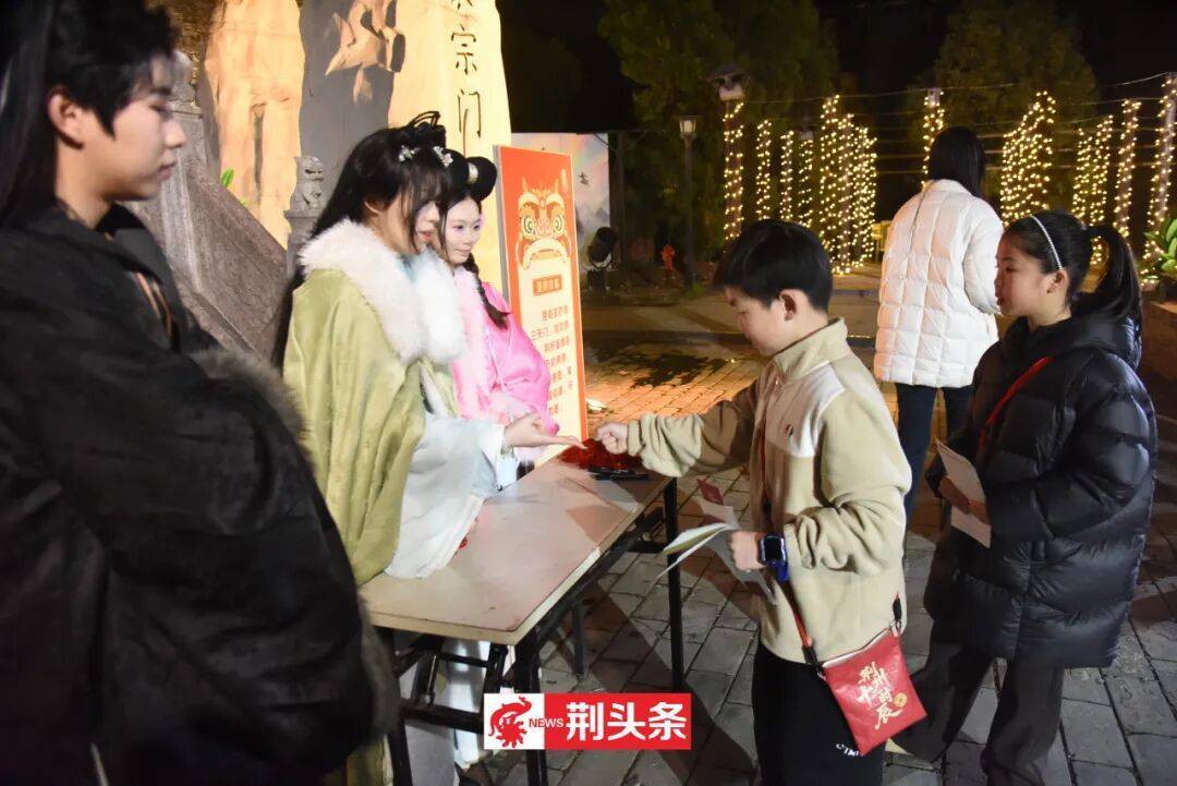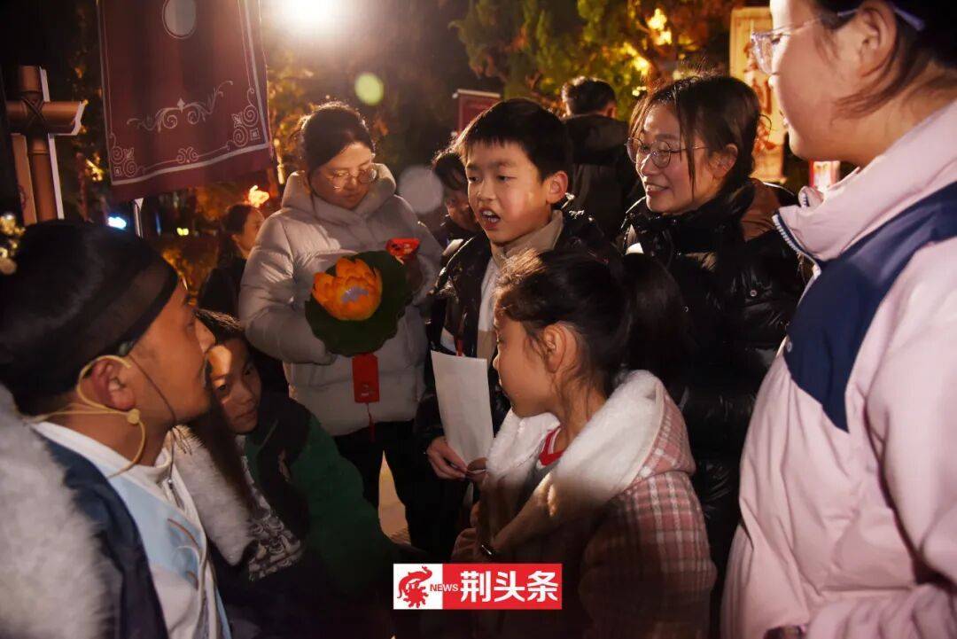 还有被誉为“人在火中舞,火在人手中”的民间绝技火焰风火轮惊艳亮相,精彩表演引得现场掌声不断。活动穿插多轮猜灯谜互动,参与者可赢取“荆币”,在合作商家直接抵扣消费,趣味与实惠兼具。