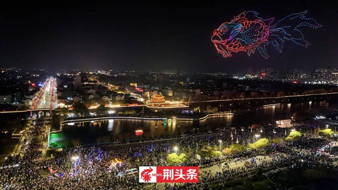 这一夜的荆州,火树银花映宾阳飞檐,凤舞星图绘楚韵华章,为市民游客留下难忘的元宵记忆。