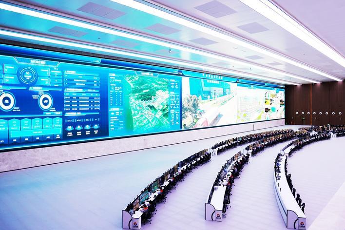 兴发集团绿色园区智慧管理中心实现远程生产管控。(黄翔 摄)
