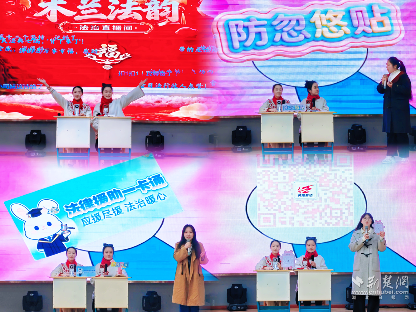 “法”宝直播间内,“木兰法韵”青年普法志愿者化身“法治宣传员”,彻底打破传统单向宣讲的刻板模式,用沉浸式情景剧演绎的方式,紧扣青少年成长需求,聚焦人民调解、公证服务、法律援助、《中华人民共和国民法典》中与未成年人权益保护相关的重点内容,将抽象枯燥的法条、专业晦涩的法律知识,转化为鲜活可感、通俗易懂的身边故事和实操指引。