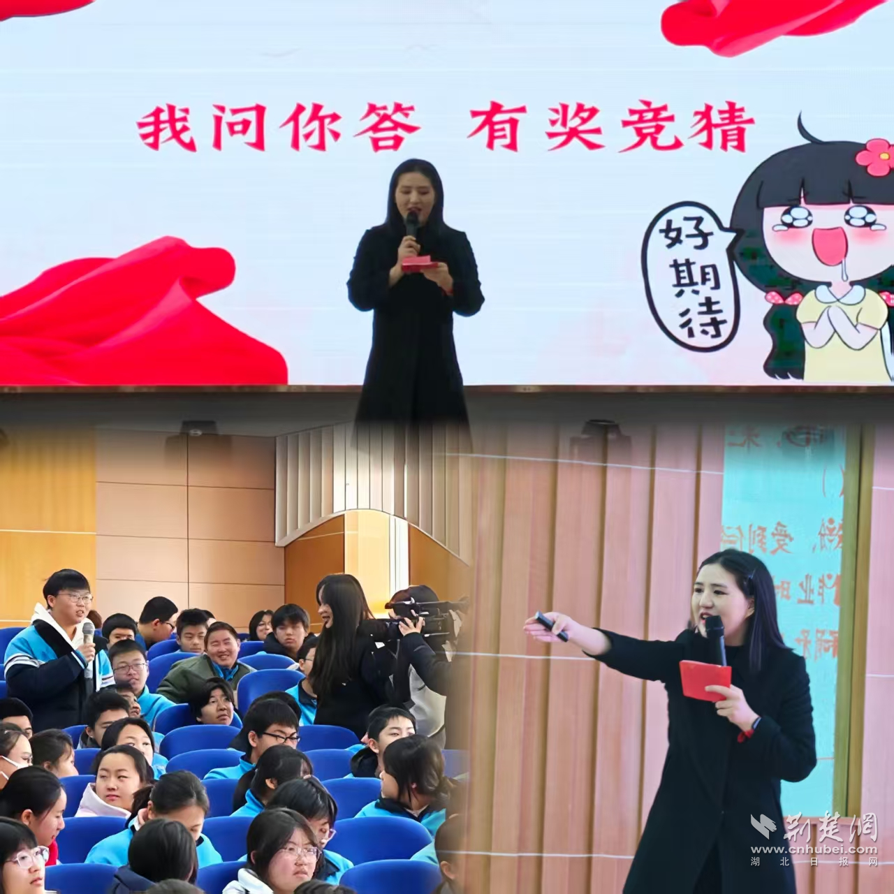 “我问你答有奖竞猜”环节将现场气氛推向高潮。青年普法志愿者紧扣活动中宣讲的法治知识,结合宪法、未成年人保护、预防校园欺凌等与学子息息相关的内容,精心设置趣味问答题,兼顾知识性与趣味性。现场同学们热情高涨、踊跃举手、积极抢答,答题氛围热烈有序。