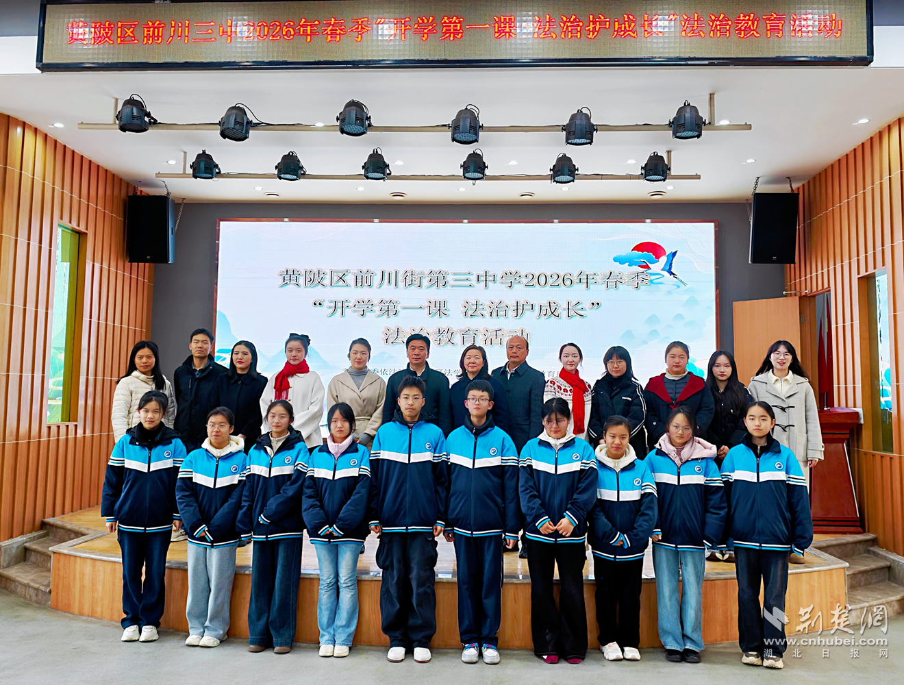 荆楚网(湖北日报网)讯(通讯员 王鹤翔)春启新程风送暖,法润青春护成长。为筑牢青少年健康成长法治屏障,3月4日,黄陂区2026年春季“开学第一课”法治教育活动在前川街第三中学启动,活动由黄陂区委依法治区办、区法学会、区司法局、区教育局共同举办。